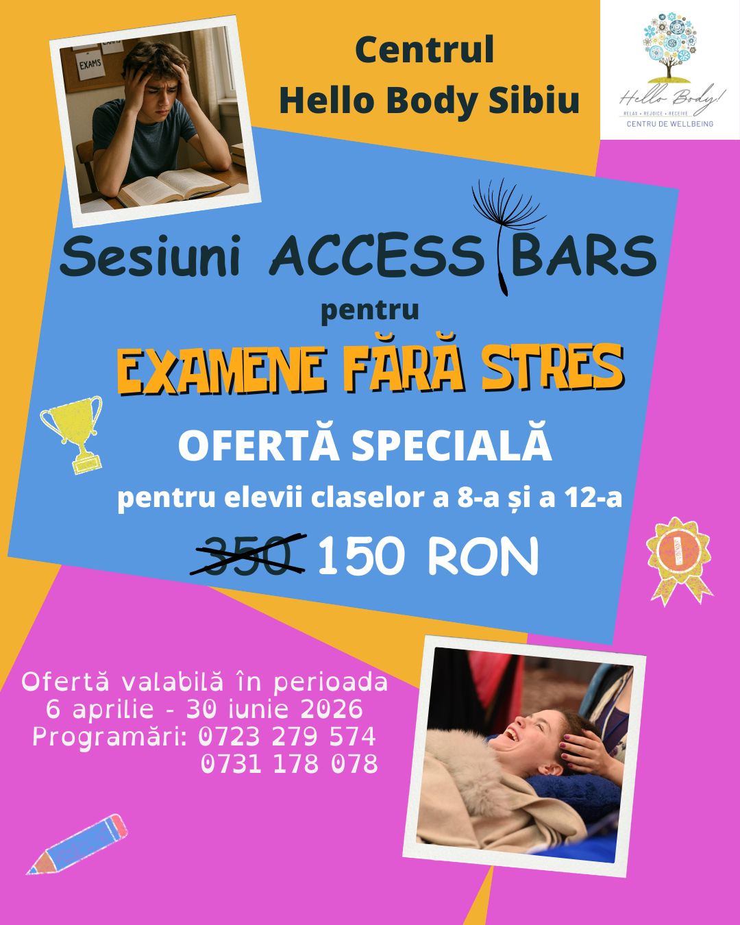 Pentru o programare contactează pe Silvana Stănese (0723279574) sau Marius Andrei (0731178078), facilitatori Access Bars.